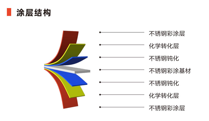 不銹鋼彩涂卷 完全革新了傳統(tǒng)彩涂卷利用鍍鋅鋼板、鍍鋁鋅鋼板等涂鍍基板的生產(chǎn)方式,采用高分子涂料,比傳統(tǒng)的油漆涂料更具有附著力,更增加了防腐效果。