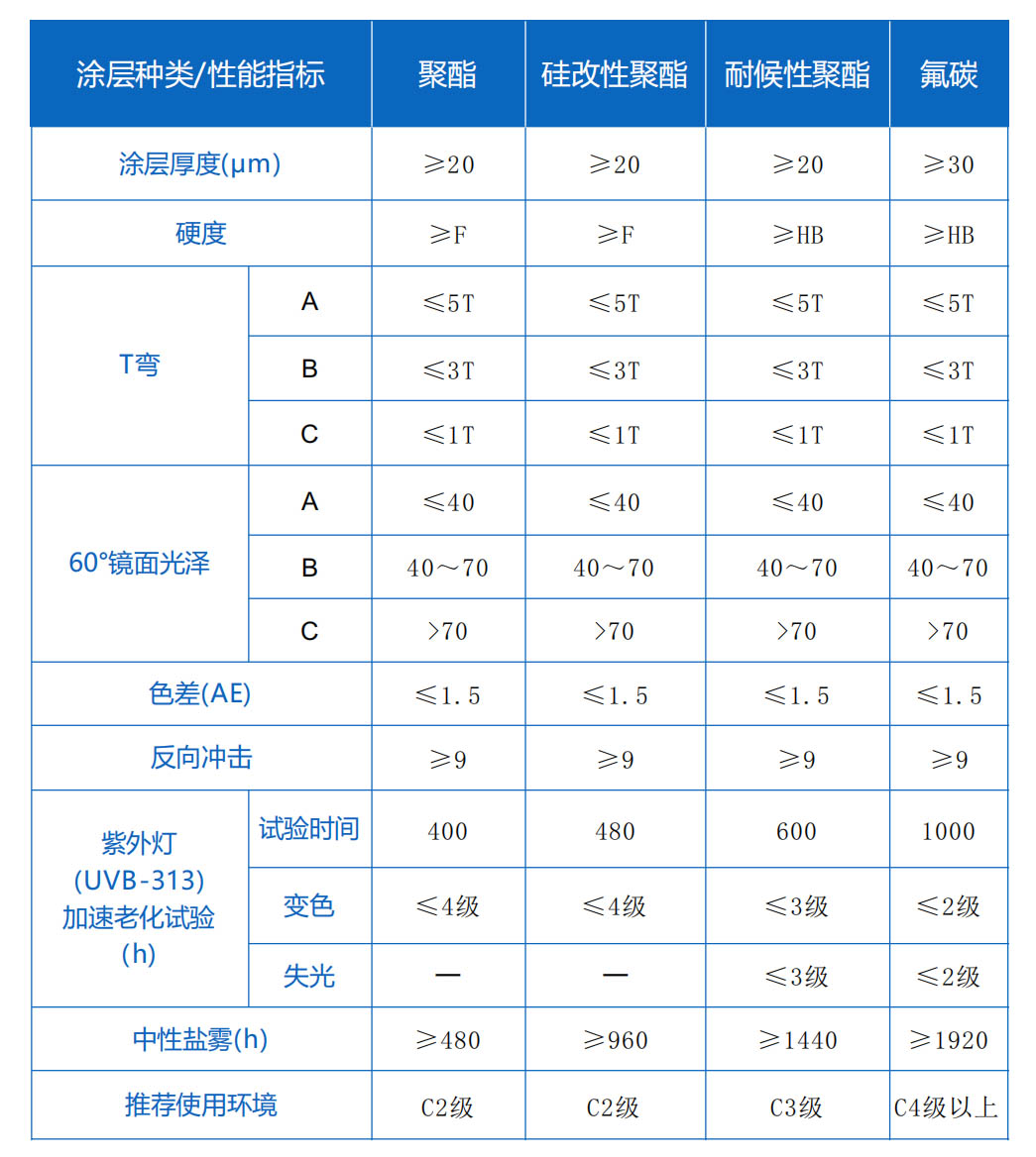 具有超常的穩(wěn)定性耐久性,在酸堿及污染嚴重的環(huán)境中能保持各項性能的穩(wěn)定。優(yōu)異的加工性能;涂裝后的彩板具有高柔韌性,耐沖擊性,還可進行后壓花處理。